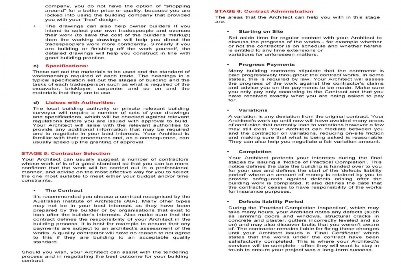 Architect's Services